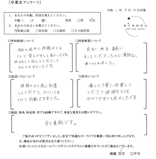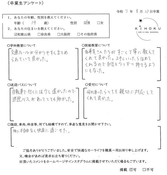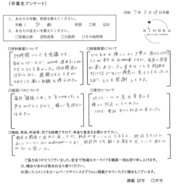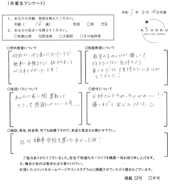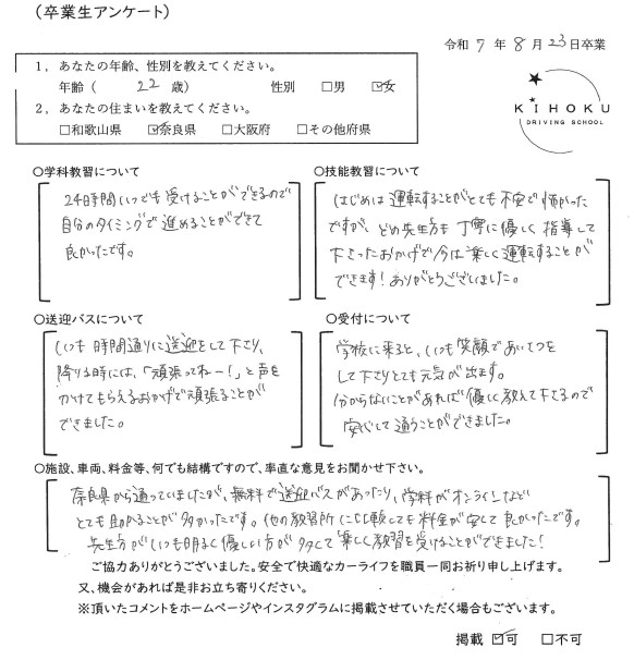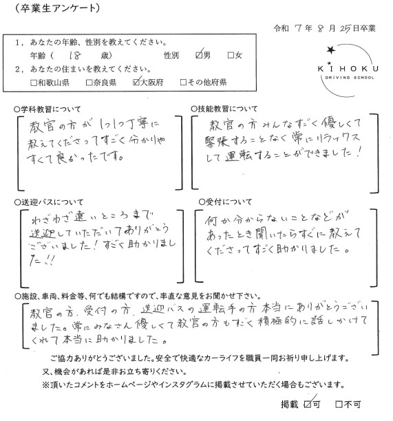 令和7年8月の卒業生の声 2025年8月31日 最終更新日時 : 2025年11月12日 kihoku_admin 奈良県18歳 奈良県20歳 和歌山県18歳 大阪府18歳 和歌山県19歳 奈良県22歳