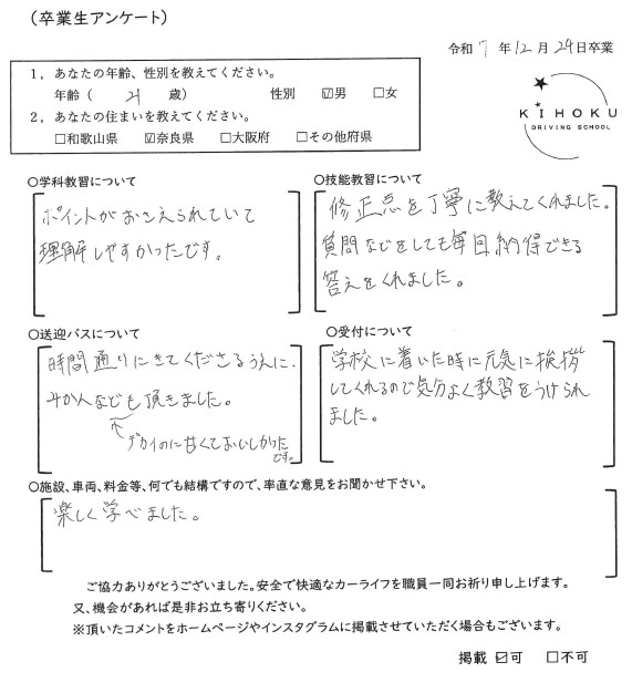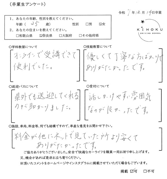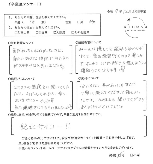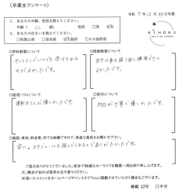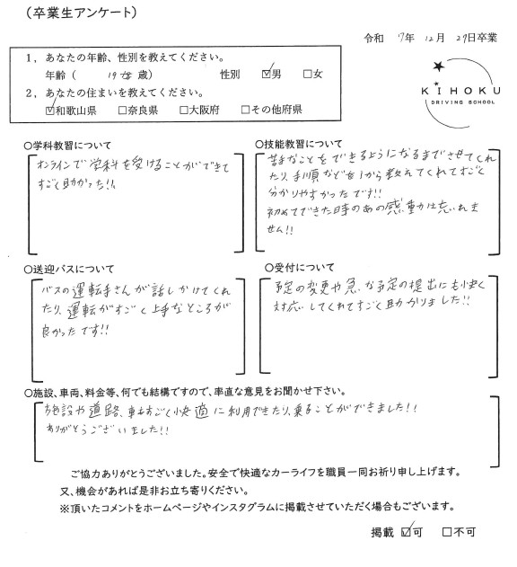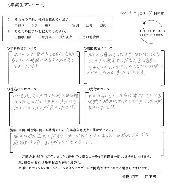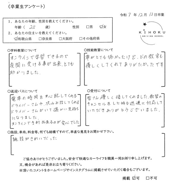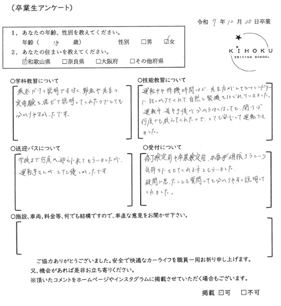 令和7年12月の卒業生の声