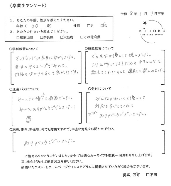 令和8年1月の卒業生の声