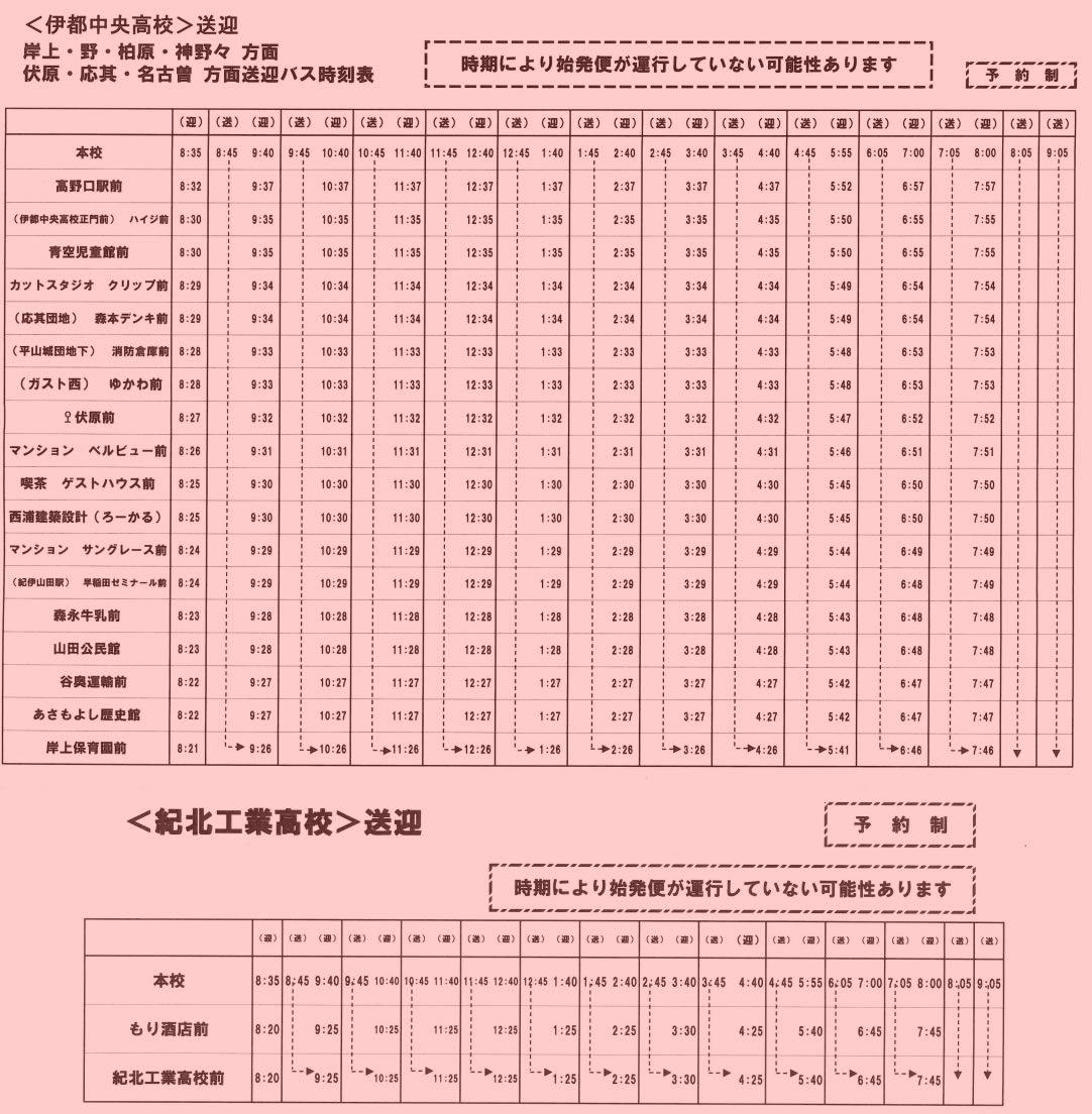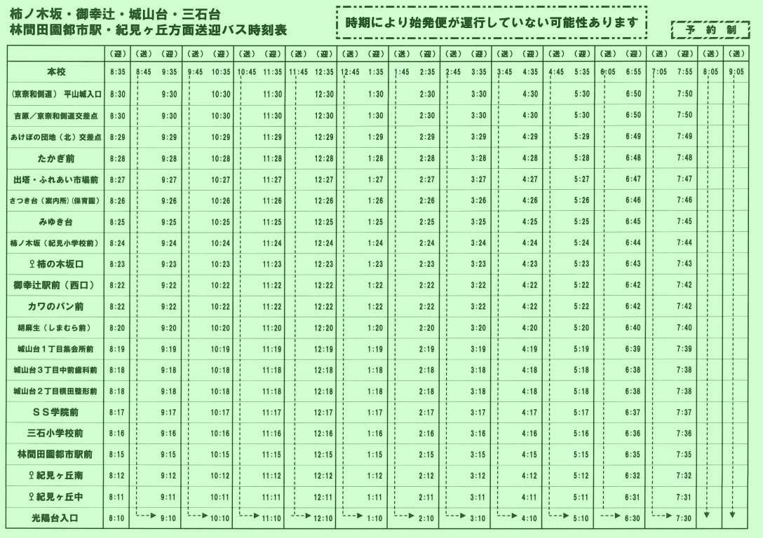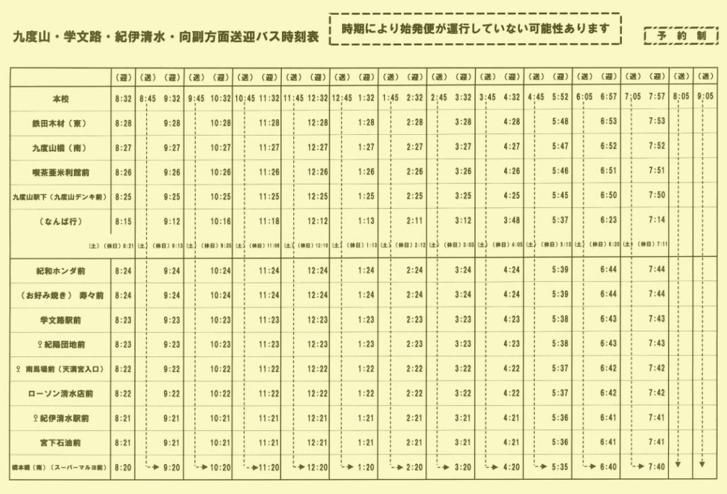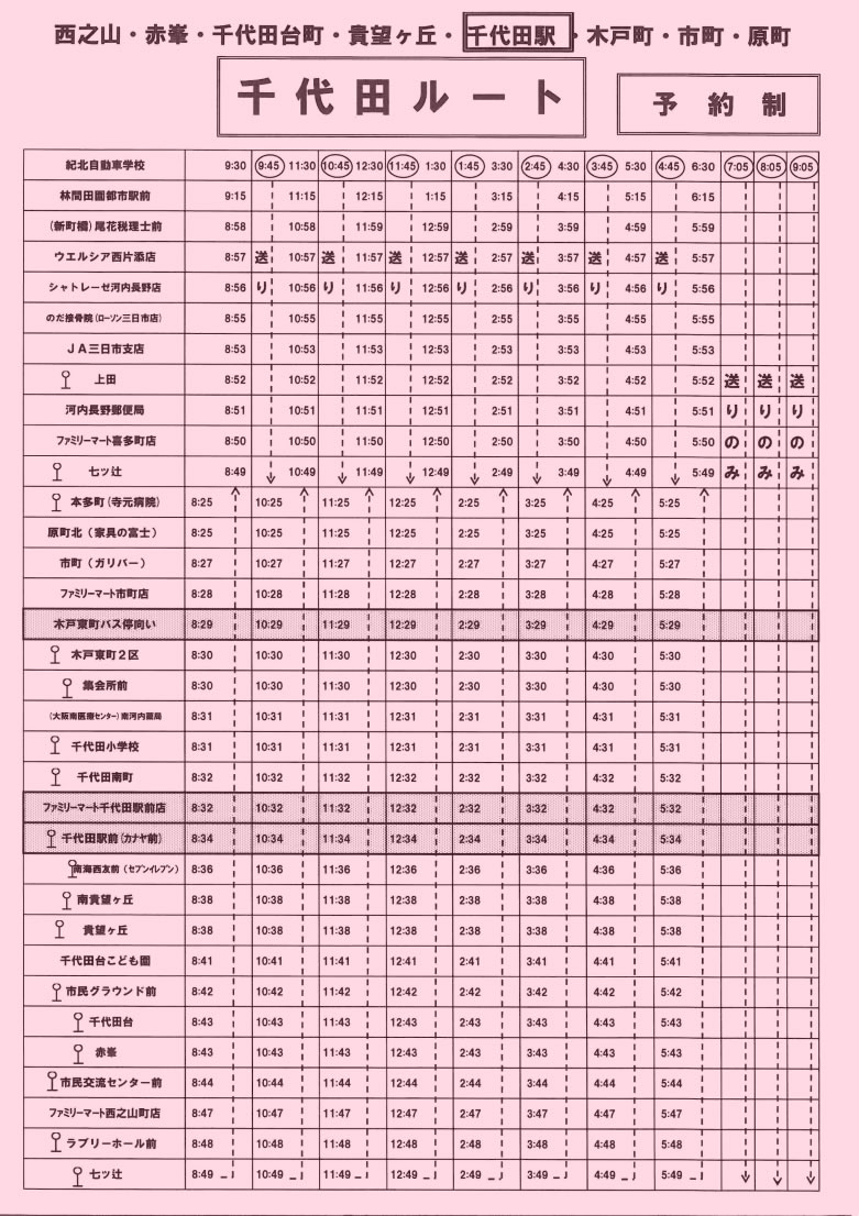 大 阪河内長野(東)・(西)・千代田 全14ルートの無料送迎バスが運行しています。