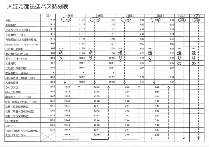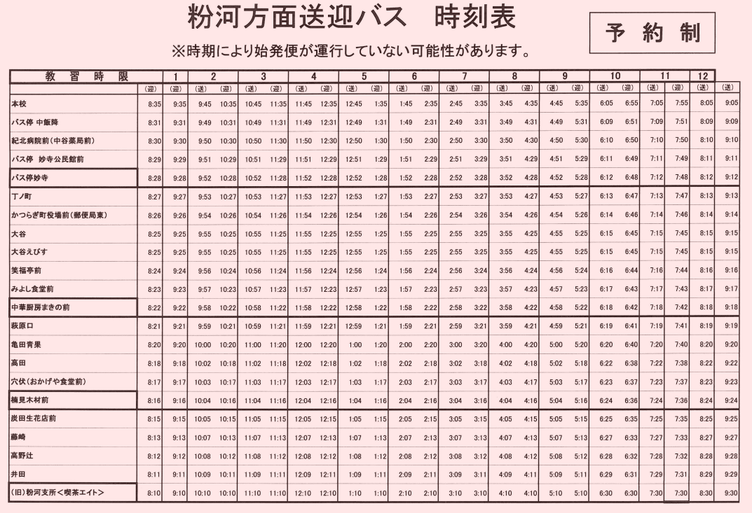 ※入校予約の際も無料送迎バス利用出来ます。その際は電話でお問い合わせ下さい。