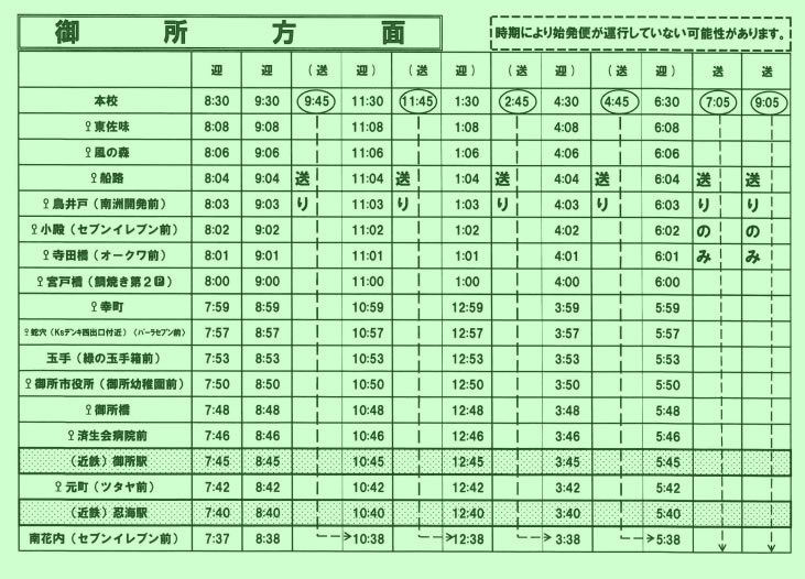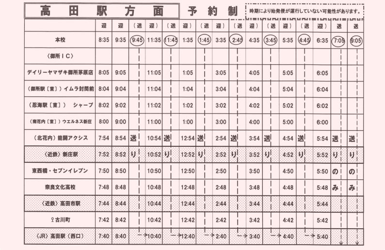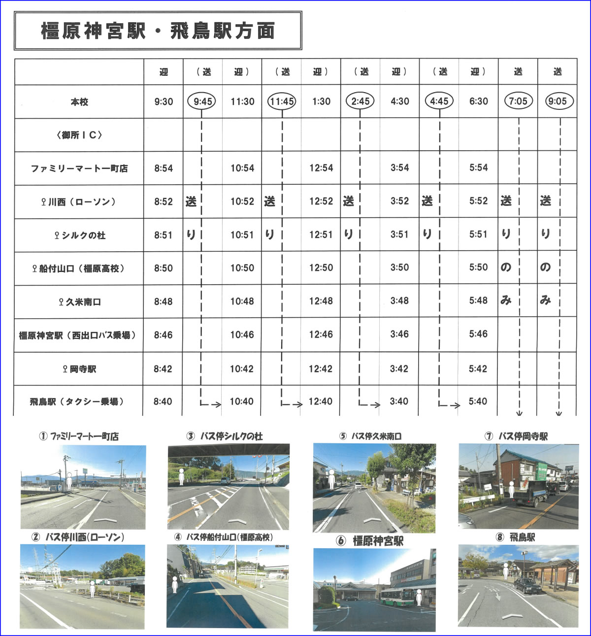 奈 良五條・高田・御所・五條(北)・大淀町 ・橿原神宮駅・飛鳥駅方面