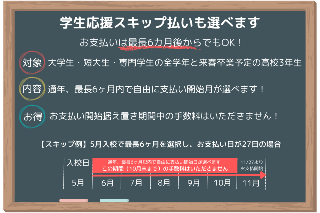 - お支払いはご入校の翌月から(※お支払日により、入校日当月からのお支払いになる場合もございます)
