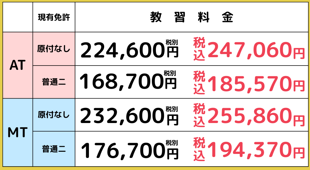 | 教習料金 | 分割払い・ローンもご利用になれます。 |