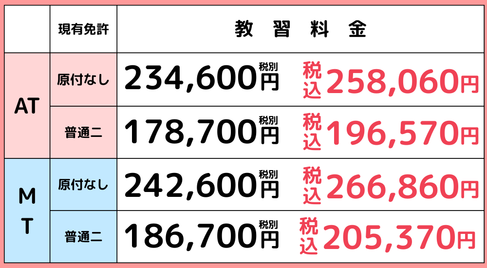 教習進めていくうちで補習が出た場合や検定に落ちた場合、その都度追加料金が発生します。