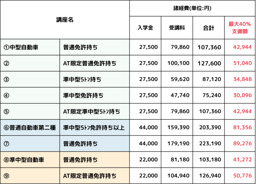 - 中途退学の場合は、残りの教習料金を返金いたします。